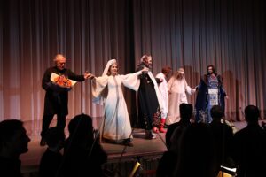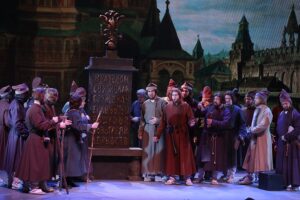 Фестиваль «Гений места» на сцене Псковской областной филармонии завершило полусценическое исполнение народной музыкальной драмы «Хованщина» Модеста Мусоргского (режиссёр спектакля — Михаил Смирнов).