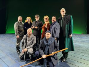 После спектакля с солистами на сцене. Вверху слева направо: Александр Скварко (Мелот), Ольга Терентьева (Изольда), Федор Безносиков, Валерия Пфистер (Брангена), Михаил Губский (Тристан), Алексей Антонов (Король Марк); внизу: Ришат Решитов (Курвенал), Александр Мартынов (Рулевой). Фото из личного архива дирижера