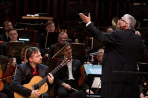 Себастьян Монтес и Большой симфонический оркестр имени П.И. Чайковского под управлением Дэвида дель Пино Клинге. Автор фото — Александр Куров. Фото предоставлено пресс-службой Фонда Мстислава Ростроповича