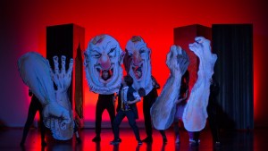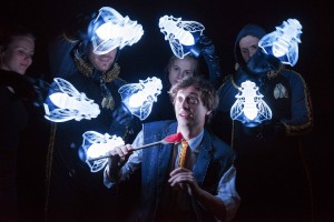 Отдельную благодарность заслуживают Ральф Зигер (сценография), художники по костюмам (Изис Флац) и по свету (Юрген Эрнтл). В чёрно-красном и синеватом освещении контрастировали белый Единорог, кабан и великаны – «на лицо ужасные, добрые внутри». Может, конечно, не совсем (или точнее – совсем не) добрые, но забавные и смешные, мастерски выполненные. Впрочем, как и мухи – прозрачные, стеклянные, большие.