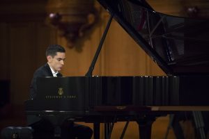 Фирменное b-moll’ное скерцо искрилось и сверкало. Тот самый случай, когда пространство трансформируется из конкурсного, забитого зала, с его тревожным ожиданием и волнением, в пространство наслаждения блистательной игрой прекрасного исполнителя. 2 скерцо Шопена — еще одна визитная карточка Димы. Праздник виртуозного совершенства, мелодических и гармонических красок, дослушанных и завершенных эпизодов, «воздуха» игры временем, красоты персонифицированных звуков и россыпи жемчужных пассажей. Триумф пианизма и фантазии.