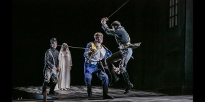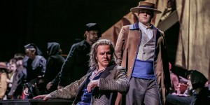Зато другая оперная знаменитость Грегори Кунде в партии дона Альваро не только оправдал, но даже превзошел ожидания. Я все же не надеялась, что 64-летний певец будет способен с такой легкостью справиться с этой труднейшей партией тенорового репертуара. Но он в замечательной вокальной форме: сильный голос с красивым тембром, верхние ноты брал на раз, но и с нижними, характерными для этой партии, справлялся без проблем. Для моего уха, привыкшего к тусклым мариинским Альваро, это был настоящий праздник. Как актер Кунде тоже вполне состоятелен, другое дело, что Уорнер не дал ему возможностей особо развернуться, поскольку образ Альваро режиссер выстроил в соответствии с не известными ему лермонтовскими строчками: «Дубовый листок оторвался от ветки родимой и в степь укатился, жестокою бурей гонимый». Поэтому Альваро у Кунде – это действительно «листок», не имеющий родной ветки, которого по дорогам перекрестков судьбы несет жестокая буря от случайности к случайности, и его выбор дороги ничего не меняет. Пистолет выстрелит случайно при попытке Леоноры опустить руку любимого с оружием, на выбранной дороге бегства найденный труп капитана Федерико Эрероса вроде дает возможность утвердиться в воинской среде, но случайный спасенный друг, оказавшийся жаждущим мести Карлосом ди Варгасом, случайно получит в руки доказательства истиной личности Альваро. Выбранная дорога в монастырь все равно кончится тем, что он станет виновником смерти брата и сестры Варгасов, и вот тогда он выберет путь, исключающий всякие перекрестки и случайности: путь самоубийства (что соответствует изначальной петербургской версии оперы). По всем этим жизненным поворотам Кунде проводит своего героя, искренне и эмоционально веря в предложенные обстоятельства, в которых его Альваро все равно всегда остается «чужаком».