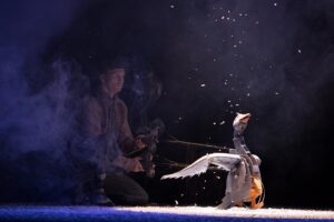 Открылся же фестиваль премьерой Московского театра кукол – спектаклем «Каштанка» в постановке Амира Ерманова, дивным рассказом о жизни и приключениях рыжей таксы с мордой, похожей на лисицу. Дерево и стружка – главные материалы спектакля, ибо, как мы все помним, хозяин Каштанки – Лука Александрыч – был столяром.