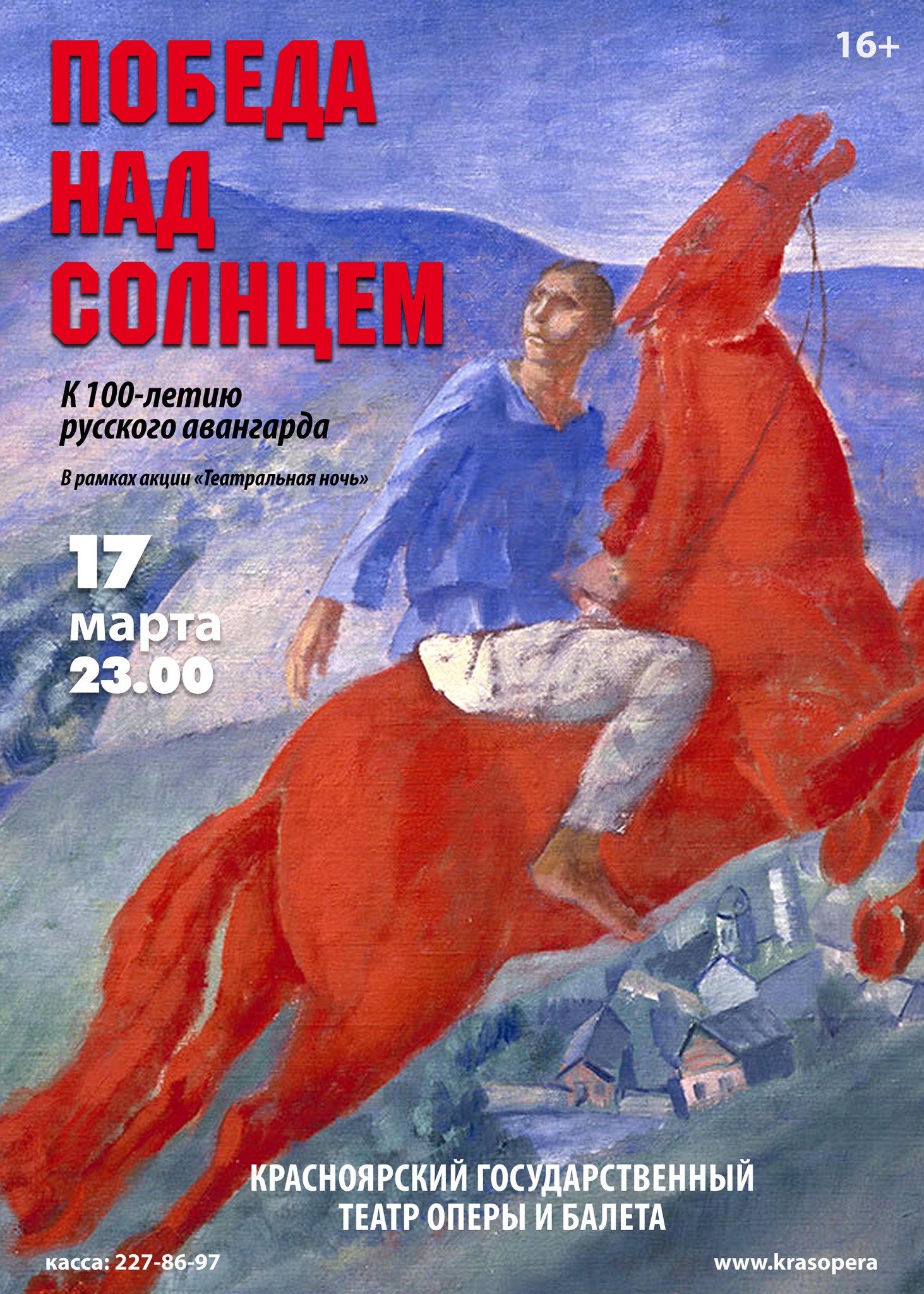 17 марта в рамках акции «Театральная ночь» Красноярский театр оперы и балета представит оперно-пластический перфоманс «Победа над Солнцем», посвященный 100-летию русского авангарда. Для зрителей, пришедших в эту ночь в театр, будут работать около десятка различных площадок. На одной посетители смогут ненадолго стать Кандинским и воспроизвести работы художника под чутким руководством самого маэстро. На другой – […]