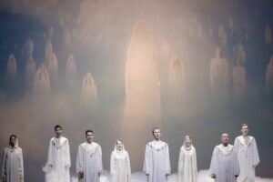 Завершила «Тетралогию» оратория «Воскрешение мертвых», написанная для масштабного состава симфонического оркестра, солистов, смешанного и мужского хоров. В ней были задействованы около 200 артистов. Вокалисты и инструменталисты находились не только на сцене, но и на балконах и даже в фойе Большого зала – с четырех сторон от зрителей, создавая тем самым антифонное звучание.