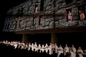 В первый вечер в пространстве Центра Исполнительских Искусств москвичи и гости столицы стали свидетелями исполнения первых двух частей тетралогии. В иммерсивной постановке «Литургии оглашенных» Алексей Рыбников выступил в нескольких ипостасях: как режиссер, либреттист и сценограф. Синтетический спектакль, в котором органично переплетаются элементы музыкального театра и art cinema, поразил множеством идей и сакральных замыслов. В какой-то степени зритель тоже являлся соучастником духовно-нравственного процесса. Экранизация фильма «Литургия оглашенных» — это зеркало жизни страны в прошлом многострадальном веке. Судьба философа Данилова, человека глубокой веры и внутреннего порядка, оказалась жестокой к герою. Данилов имел провидческий дар, ему представлялась другая новая жизнь за гранью обыденности. И эти видения не исчезали и все время преследовали его, когда он был репрессирован в послевоенный лагерь, мистические сны посещали Данилова и в революционном Петрограде. И как эта борьба тёмных и светлых сил уживалась в одном человеке, который предвидел духовное спасение России, так и осталась загадкой. И даже смерть главного героя не нарушает это драматическое повествование.