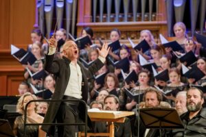 Вместе с Госоркестром на сцену Большого зала вышли Государственная академическая хоровая капелла России им. А.А. Юрлова (худ. рук. Геннадий Дмитряк) и мужской хор вокального ансамбля Arielle (худ. рук. Эльмира Дадашева). Среди солистов — сопрано Лилия Гайсина, тенор Уриэль Гранат и басы Павел Андреев, Михаил Круглов и Владимир Миллер, партия органа — Евгения Кривицкая.