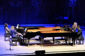 Дудамель спустился в зал, и сел рядом со своей женой, слушал исполнение. Оно было виртуозным, ярким, рассчитанным по долям секунды. Им – четверым пианистам — долго аплодировали.