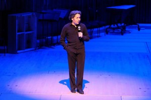 А после перерыва снова была европейская премьера Теда Хирна (родился 1982) «Law of Mosaics». Закон мозаики: как иметь дело с частями в отсутствие целых. Композитор поднялся на сцену (мне приглянулись красные кеды) и рассказал о своём произведении. Он учился в Лондоне в школе музыки и был рад снова вернуться в этот город после долгого отсутствия. Да еще и представлять своё произведение на сцене Барбикана! После исполнения автор снова поднялся на сцену под аплодисменты.