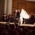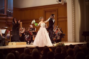 Если у гостей мы больше внимания обращали на танец, то, как бы ни была важна эта составляющая для героя и героини, от них все же в первую очередь ждешь высококлассного пения. К сожалению, в полной мере оценить вокальное мастерство наших солистов мы не имели возможности. По причине, слишком хорошо известной зрителям оперетты и мюзикла. Я имею в виду головные микрофоны. Их использование вполне понятно, скажем, в Доме молодежи, но совершенно, на мой взгляд, противоестественно в таких великолепных в акустическом плане залах, как консерваторский и театра оперетты – напомню, располагающегося в помещении бывшего филиала Большого театра. Впрочем, и в само́м Большом, помнится, не погнушались микрофонами, давая новогодний концерт оперетты, что́ вообще никакого объяснения не имеет, кроме, как ни обидно, пренебрежительно-снисходительного отношения к «легкому» жанру.