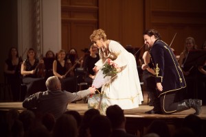 И все же главный сюрприз вечера оказался не художественного плана. Спев первую часть дуэта Бони и Стасси «Любовь такая – глупость большая», Карой и Сильви отбежали к двери за кулисы и вывели на авансцену молодого человека с букетом в руках. Им оказался сотрудник Венгерского культурного центра, который выбрал такой момент и такую форму для предложения руки и сердца своей любимой. И, конечно же, в ответ он, а с ним вместе и весь зал, услышал: «Да!» Потому что в оперетте всегда побеждает любовь!
