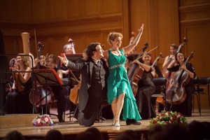 Однако перейдем от общих рассуждений к собственно концерту, их вызвавшему. «Шедевры венгерской оперетты» – так называлась программа, в которой участвовали гости – хорошо знакомые московским поклонникам жанра Сильви Сенди и Карой Пеллер – и наши земляки: Светлана Криницкая, Павел Иванов и Женский симфонический оркестр под управлением Ксении Жарко. Это не первый такой концерт за последние годы. Состав немного меняется от раза к разу, но неизменными участниками ансамбля остаются Сенди, Пеллер и оркестр Жарко.