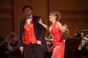 Российская школа была представлена, что естественно, лирической парой. И надо сказать, Иванов с Криницкой оказались достойными партнерами, выйдя далеко за рамки амплуа премьера и премьерши в традиционном их понимании. Об этом говорит сам выбор репертуара. Скажем, две женские арии, которые, в соответствии с пьесами, являются эстрадными выступлениями героинь – поющих танцовщиц Джудитты и Сильвы. Причем последней – даже не «Хей-я!», где при желании можно ограничиться вокалом, а «Частица черта в нас», где без танца не обойтись. И Светлана так их и исполнила, завершив полноценной пляской в клубящемся облаке своих пышных юбок. А Павел вообще начал с номера, само название которого означает танец – «Чардаша Тасилло». Что, впрочем, не исключило и чисто вокальных номеров: арий Мистера Икс и Раджами – у него и Марицы – у нее, а также дуэта Сильвы и Эдвина «Помнишь ли ты?..».