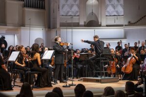 В аристократичной манере игры Милюкова выверен каждый пассаж, октава, форшлаг — комар носу не подточит. При этом в ней нет холодного академизма, элемента заученности: все происходило в моменте, сиюминутно рождалось на глазах слушателя. Инструмент звучал предельно эстетично и благородно — скрипачу более чем удались как лирические, так и патетические эпизоды. Он беспрепятственно преодолевал трудности огромнейшего диапазона во многих фрагментах, легко и красиво выходил на трепещущие верхушки.