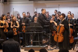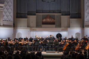 В Московской филармонии выступил Российский национальный молодежный симфонический оркестр под управлением Александра Сладковского. В программе вечера значились Скрипичный концерт Яна Сибелиуса (солист — Павел Милюков) и Четвертая симфония Антона Брукнера