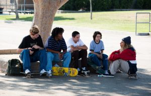 Тяга к приключениям – одна из причин, по которой Стив начинает проводить время с новой компанией. Приключение – то, кто к чему он стремится. Ареол их держится на сугубо иррациональных переживаниях — музыке, скейтбординге, особом языке, на котором общаются подростки. Но есть и то, от чего он бежит – это строгие законы домашней жизни и удушающая (отца в семье нет) материнская любовь.