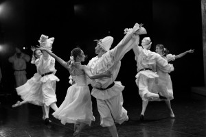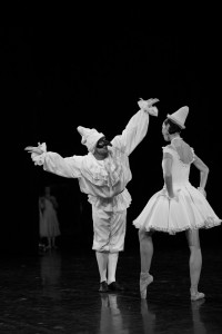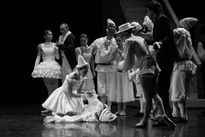 Второе отделение и честь завершить вечер были отданы одноактному балету «Пульчинелла» Игоря Стравинского в постановке Ильи Живого. Творческий путь хореографа схож с карьерой Максима Петрова. Живой так же окончил Академию русского балета имени А.Я.Вагановой, в труппе с 2008 года. И в «Мастерской» не новичок. Его балет «Времена года» на музыку Макса Рихтера включен в репертуар театра. Однако «Пульчинелла», безусловно, знаковая веха в работе Живого. Сюжетный балет, да еще и комедия – уже неординарное событие по нынешним временам. Но не только выбором жанра отличился хореограф. Главное достоинство постановщика – понимание стиля комедии дель арте. Подчеркнутая зрелищность театра масок, непринужденное веселье, импровизационная живость коллективного действа скрашены у Живого чувством меры, позволяющим обходиться без грубых буффонных шуток и дозированно использовать трюки. Намеренную строгость выгодно подчеркивают бело-черные костюмы (художник София Вартанян) и скупые декорации (оформление Ильи Живого).