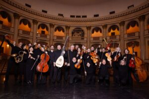 В оркестре наряду с барочными струнными представлены деревянные духовые, натуральные валторны и лютня теорба.