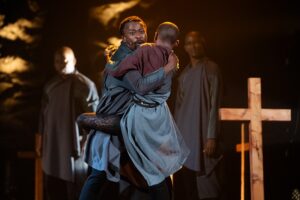 Ритмичность африканских песен а капелла в стиле «исикатамия», которые звучат в этой постановке, воспринимается как своего рода дыхание земли, предков и самой жизни. Гипнотические африканские напевы, словно бесконечные мантры, пронизывают зал, создавая атмосферу пограничного состояния, в котором исчезают границы между сценой и зрителем. Этот танец — не просто движение, а глубокий метафизический поиск, где танцоры, похожие на молящихся, через язык тела воплощают ритуальные обряды, переживая коллективное горе. В этом состоянии границы между сценой и залом стираются, и зритель оказывается лицом к лицу с вечными вопросами, которые ставит перед ним главный герой спектакля — профессиональный плакальщик.