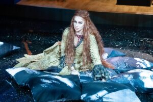 А в зале зрителя поджидает манящий полумрак некоего венецианского чертога, тяжёлые ткани драпировок, проплывающие гондолы за окном и, разумеется, роковая зеленоокая колдунья Маддалена с ниспадающим едва ли не до пяток водопадом волос тициановского (огненно-рыжего — Г. О.) цвета.