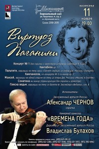 Образ Паганини всегда возбуждал фантазию современников: его считали чуть ли не дьяволом. Даже после смерти гениального скрипача епископ Ниццы отказал родственникам в заупокойной мессе. Этот образ во многом создал сам музыкант, утверждая, что откроет секреты своего искусства только после своей смерти. Поистине «дьявольски» владея скрипичной техникой, он открыл новые горизонты для этого инструмента. К счастью, Паганини оставил после себя множество произведений, благодаря которым мы можем судить о его искусстве. Известные скрипичные произведения прозвучат на концерте, посвященном творчеству Паганини. Партию скрипки исполнит Заслуженный артист России Александр Чернов в сопровождении камерного оркестра «Времена года» под руководством Владислава Булахова.