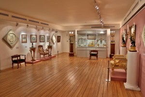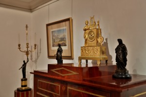 Может быть, посетитель окинет взглядом убранство дворянских кабинетов и комнат? Там он тоже найдёт немало интересного. Современник А.С. Пушкина, Ф.Ф. Вигель, в первой трети XIX века в моде были “алебастровые вазы с иссеченными мифологическими изображениями, курительницы и столики в виде треножников, курульские кресла, длинные кушетки, где руки опирались на орлов, грифонов или сфинксов. <…> Красное дерево, вошедшее во всеобщее употребление, начало украшаться <…> лирами, головками: медузиными, львиными и даже бараньими”.