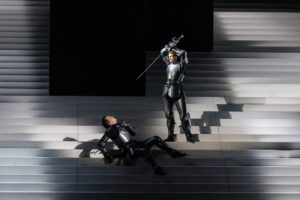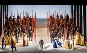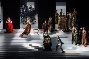 При всей масштабности режиссерского замысла музыкальная сторона спектакля временами давала заметные сбои, в особенности это касается тяжеловесного звучания оркестра, которым так активно управлял Кристиан Кнапп. Хор МАМТа под руководством Станислава Лыкова стал одним из главных драматических двигателей спектакля: его звучание — от скорбных молитв до боевых выкриков — формировало эмоциональные пики постановки, придавая ей эпический масштаб.