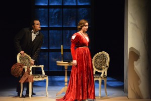 П.И. Чайковский был не только автором музыки, но и автором либретто. Даже беглый просмотр содержания картин говорит о том, что у композитора было особое отношение к Татьяне, главной героине оперы. Эту партию прекрасно исполнила Ольга Толкмит, обладательница красивого, сильного, полётного сопрано. Драматическая линия партии была выстроена певицей в развитии характера от барышни из русской усадебной глубинки до уверенной и вполне владеющей собой петербургской светской дамы. Жизнь души героини, затаённый огонь её чувства, её необретённой любви были переданы голосом певицы глубоко проникновенно. На протяжении всего спектакля это было захватывающее повествование, полное драматизма.