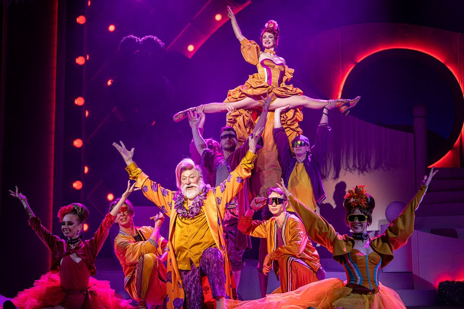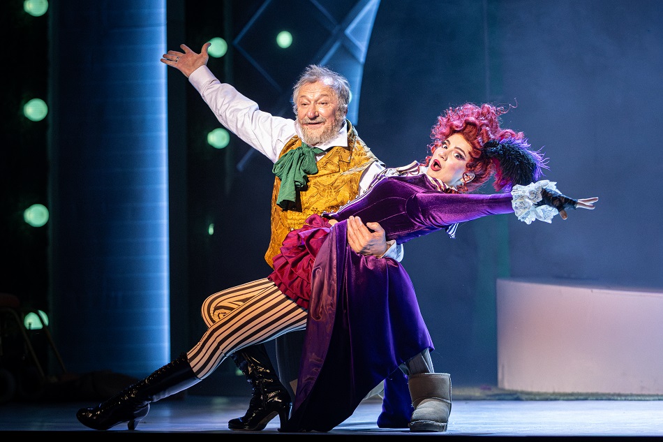 Но в третьем действии «немощный» Виконт уже бесчинствует без оглядки: в хипповом наряде (его приличную одежду запирают в кладовке) отплясывает канкан или современные танцы в развеселой молодежной компании и помогает своей «внучке» Антуанетте крутить роман с Рене, бойким молодым адвокатом на мотоцикле (Григорий Шафир).