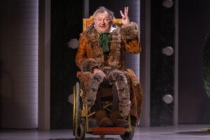 Искусность актерской работы Яковлева поразительна. Не углядев в программке, кто сидит в инвалидном кресле, я подумала: очередной опереточный рамоли. Но как он наблюдает! Как подает редкие реплики, варьируя их интонацию, как понемножку забирает внимание, прибавляя своему персонажу смелости действий, как неожиданно удивляет характерным резким жестом! Роль просчитана до тонкостей, крещендо выполнено мастерски, в трансформации героя нет ни малейшей натяжки. И когда столетний старец пускается в финальный пляс, ты это воспринимаешь как абсолютно естественное раскрытие характера.