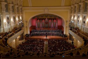 Продуманный выбор репертуара, содержательность хоровых программ превращает многие выступления Капеллы и Госхора в подлинные художественные события, и этот по праву исторический концерт тоже не стал исключением. 130 человек на сцене пели как единый хоровой организм, подобный живоносному роднику с его целебной силой и потрясающим благозвучием.