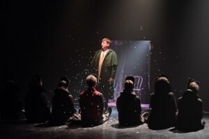 Но сей хаос четко скомпонован, а музыка Дмитрия Максимачева задает особую атмосферу. Музыка здесь неотъемлемая часть спектакля, она органично вплетена в световую партитуру (художник по свету Василий Ковалев) и пластическую ткань. Замечательная работа хореографа Алишера Хасанова, его умение работать с актером, не выматывая его, а раскрепощая, и знание законов драматической сцены, конечно же, украсили спектакль. Достоин всяческих похвал актерский ансамбль, чуткий, слаженный, с хорошим внутренним «слухом».