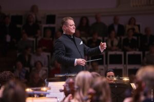 Его-то как раз и стремился передать Александр Сладковский в собственной интерпретации, и «романтизация» Бетховена ему удалась. Впечатлило количество участников медной группы, которая то и дело намеренно выводилась дирижером на первый план: грандиозность архитектуры симфонического здания зашкаливала. Кстати, медники показали завидную выдержку, практически избежав интонационных погрешностей в ансамблях. Александр Витальевич, склонный к драйву и эпике, выделял многочисленные тутти-эпизоды на форте, обрушивая в зал грузный массив бетховенской энергии. Но вместе с экспрессивностью и полнокровностью подачи нельзя было не услышать тонкость отделки и максимально богатую градацию нюансировки: в этом сочинении РНМСО продемонстрировал поистине широкий спектр динамических средств. Прекрасно играли солисты: Павел Чередниченко (гобой), Иван Тихонов (кларнет), Владимир Пинялов (труба), Игорь Егоров (валторна), Ксения Арсенова (флейта). Больше всего в этой трактовке запомнилась вторая часть — траурный марш — с его открытой скорбью, который в малеровской редакции преображается в невероятной силы и мощи реквием по павшим. Он звучал очень надломленно и с безумным напряжением. Здесь можно было расслышать эхо Вагнера с Рихардом Штраусом, ощутить даже будущего Прокофьева. И перед глазами неожиданно вставала человеческая трагедия Первой мировой… Ради всего этого точно стоило прийти на концерт.