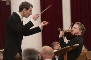 Драгоценное благородство звучания оркестра во вступлении к первой части предвосхитило голос солирующей скрипки, заговорившей на особом, интеллигентно-доверительном языке инструментального belcanto просто и с достоинством, без особого старания понравиться. Этим очень индивидуальным тоном солист, дирижер и оркестр вели в тот вечер содержательную беседу о чести и самоуважении, достойном белых колонн дворянского собрания, о светлой грусти русского сердца, о пленительной женственности (в лирической части блестящего полонеза), о залихватской безоглядности, удали народной пляски. О той гармоничной полнокровности жизни, что так тонко чувствовал и так жаждал композитор.