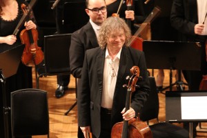 Сольную партию в Первом виолончельном концерте Альфреда Шнитке проникновенно исполнил замечательный музыкант Александр Князев, поразивший публику своим философским прочтением гениальной партитуры. Иногда эту музыку называют еще чёрно-белой. Мрачный колорит сочинения с его хоральной фактурой развития, экспрессией первой части и трагической обречённостью финала, еще больше усиливает тонус напряжения. Финал концерта – это луч надежды, подарок судьбы, своего рода воскрешение после смерти. Шнитке, перенёсший свой первый инсульт, так и говорил, что эта музыка пришла к нему из высших сфер.