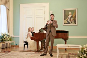Вслед за хором слово было предоставлено главным действующим лицам – 16-летней пианистке из Екатеринбурга Софье Меньшиковой и 15-летнему москвичу – кларнетисту Эрику Мирзояну. Эта фраза имеет не только переносное значение, подразумевающее «слово» музыкальное. Поскольку салонная форма музицирования – не концерт в узком смысле слова, а некое общение, они имели возможность рассказать о себе, отвечая на вопросы ведущей и слушателей. Кстати, атмосферу душевной близости создавало само отсутствие сцены или хотя бы приподнятого над паркетом подиума.